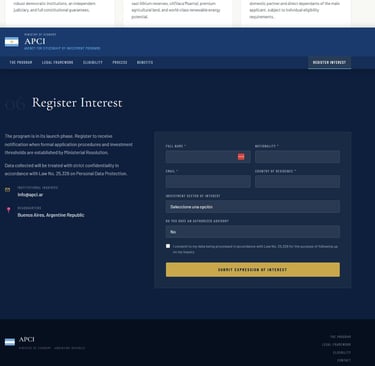 近期,多位海外客户向我们咨询网站 apci.ar,该网站虚假地将自身呈现为阿根廷经济部下属的投资入籍项目机构(APCI)的官方渠道。