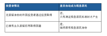 投资入籍申请人的税务身份
